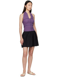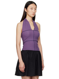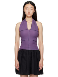 Ribbed stretch organic cotton jersey top. · GOTS-, OEKO-TEX®-, and OCS 100-certified · Lettuce edge and exposed seams throughout · Fixed halter strap at V-neck · Contrast stitching in navy Supplier color: Venet purple 91% organic cotton, 9% elastane. Made in Portugal 252922F111012