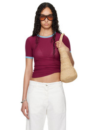 Stretch organic cotton ribbed jersey T-shirt. · GOTS-, OEKO-TEX®-, and OCS 100-certified · Crewneck Part of the exclusive SSENSE HEAT capsule. Supplier color: Brus blue/Dark pink 91% organic cotton, 9% elastane. Made in Portugal 252922F110000