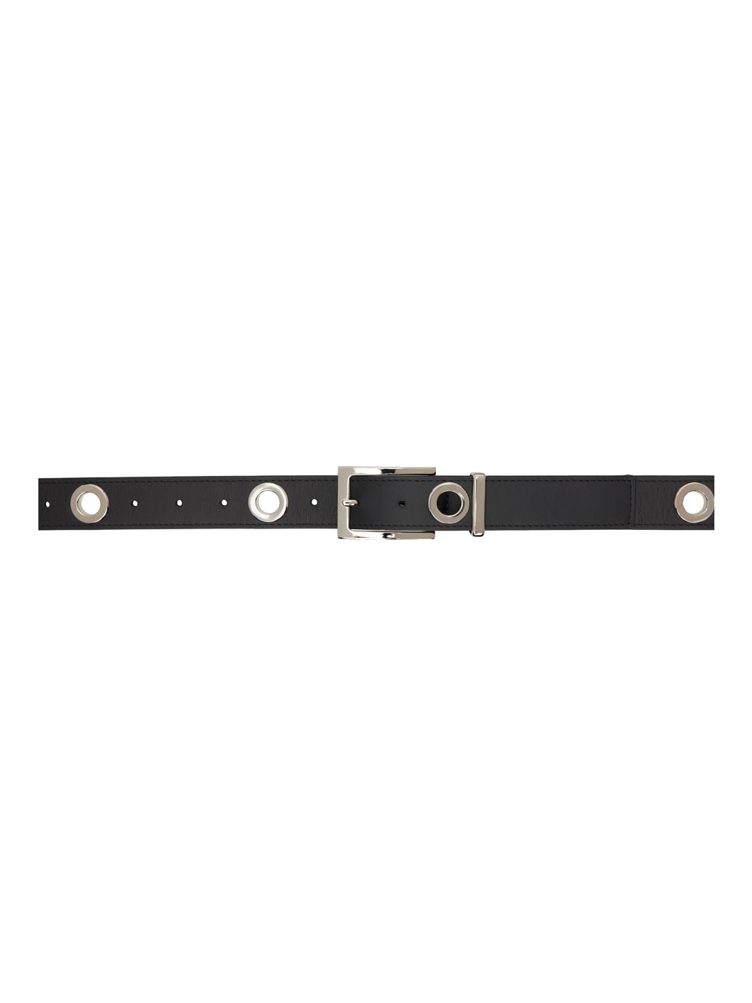 Buffed leather belt in black. · Eyelets throughout · Pin-buckle fastening · Keeper loop · W1" Supplier color: Black Leather. Made in Portugal 242868F001005