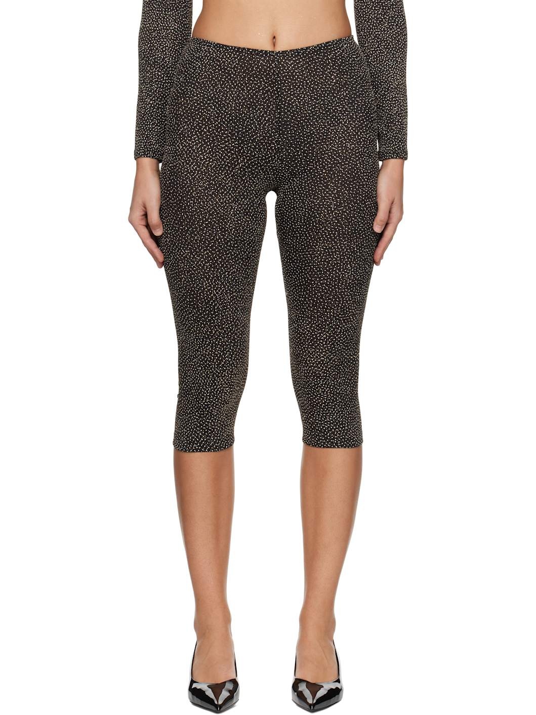 Semi-sheer plain-woven stretch nylon-blend leggings. Metallic thread detailing throughout. · Elasticized waistband · Cropped leg Supplier color: Black/Gold 92% nylon, 5% spandex, 3% metallic fibre. Made in Portugal 251868F085000
