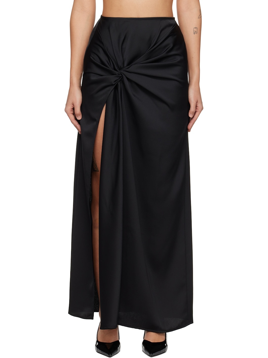 Recycled polyester satin maxi skirt. Draping throughout. · Twisted detailing at front · Slit at front hem · Concealed zip closure at back · Unlined Supplier color: Black 100% recycled polyester. Made in Portugal 251868F093001