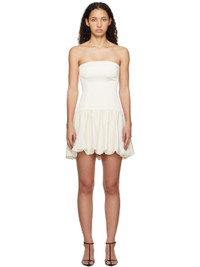 Recycled polyester satin minidress. · Straight neck · Bubble hem · Concealed zip closure at back · Full cupro- blend twill lining Supplier color: Porcelain Body: 100% recycled polyester. Lining: 50% cupro, 50% viscose. Made in Portugal 251868F052003