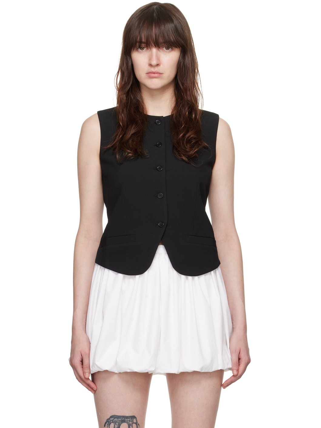 Stretch polyester- and viscose-blend barathea vest. · Round neck · Button closure · Darts at front · Welt pockets · Cinch strap at back · Full cupro- and viscose-blend satin lining Available exclusively at SSENSE. Supplier color: Black Body: 68% polyester, 29% viscose, 3% elastane. Lining: 50% cupro, 50% viscose. Made in Portugal 242868F068001
