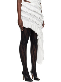 Polyester crepe miniskirt. Shirring and ruffles throughout · Asymmetrical construction · Elasticized waistband · Extended trim at hem Supplier color: White 100% polyester. Made in Portugal 251868F090001