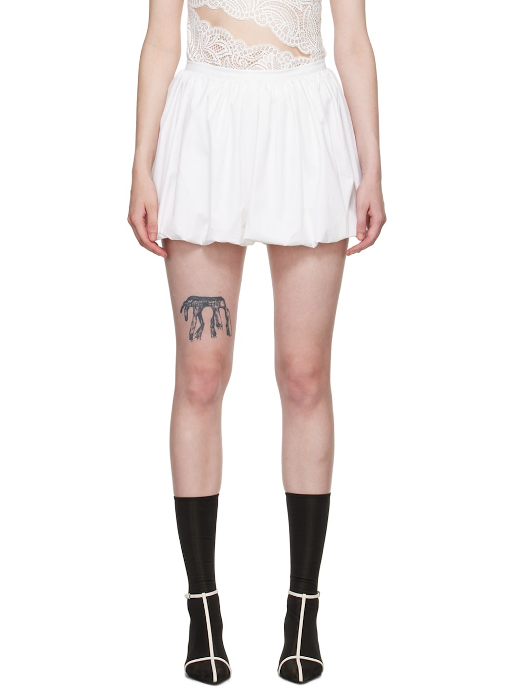 Stretch cotton-blend twill skirt. Gathering throughout. · Bubble hem · Concealed zip closure at back · Full cupro- and viscose-blend satin lining Supplier color: White Body: 67% cotton, 29% polyester, 4% elastane. Lining: 50% cupro, 50% viscose. Made in Portugal 242868F090000