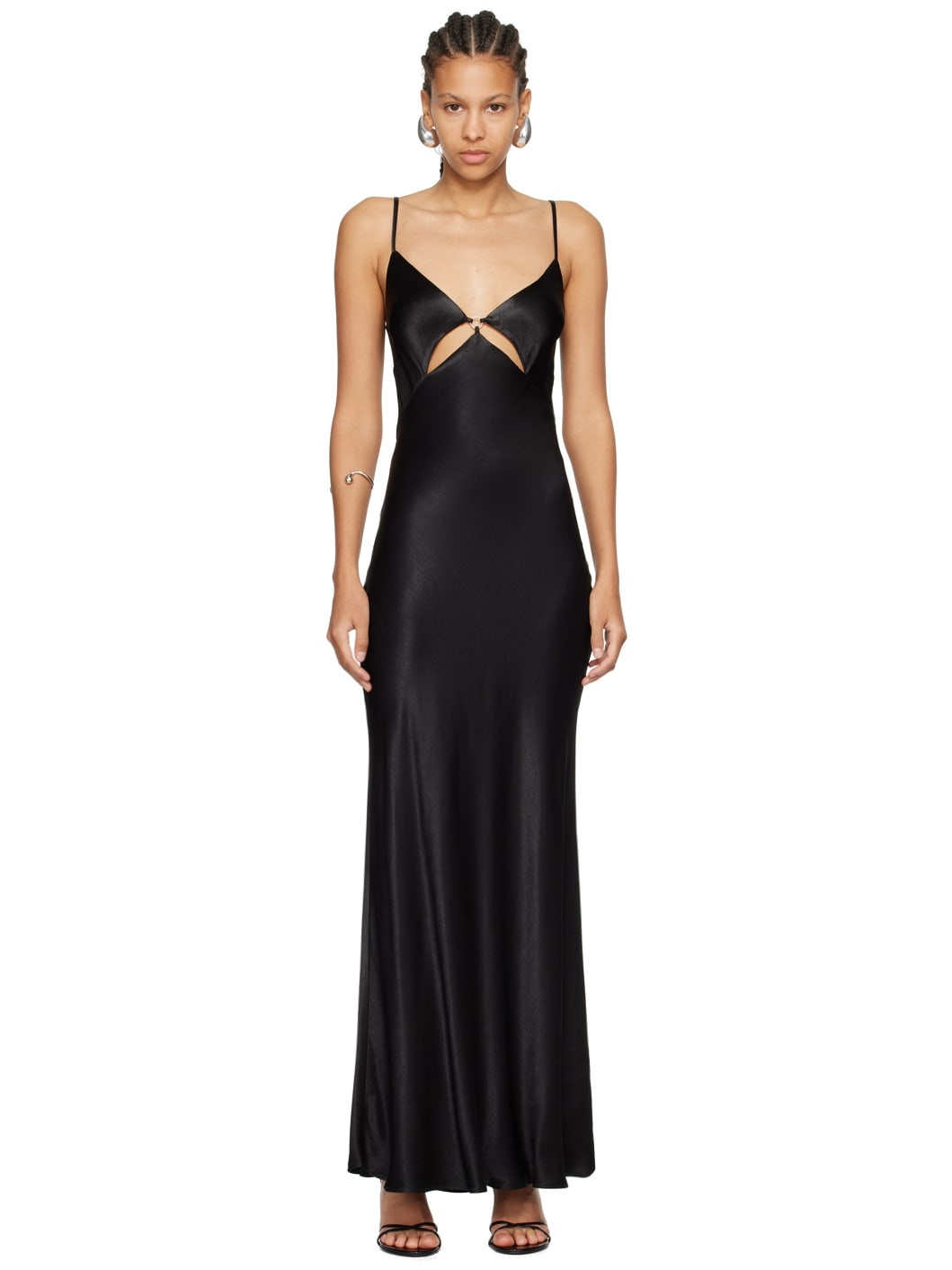 Bias-cut viscose charmeuse dress. · V-neck · O-ring and cutouts at chest · Adjustable spaghetti straps · Button fastening, cutout, and zip closure at back Supplier color: Black 100% viscose. Made in Australia 241880F055037