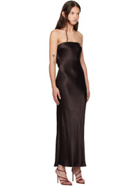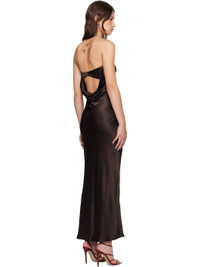 Bias-cut viscose satin maxi dress. · Elasticized straight neck · Darts at chest · Hook-eye fastening at back · Draping at low back · Unlined Supplier color: Dark chocolate 100% viscose. Made in Australia 251880F055013