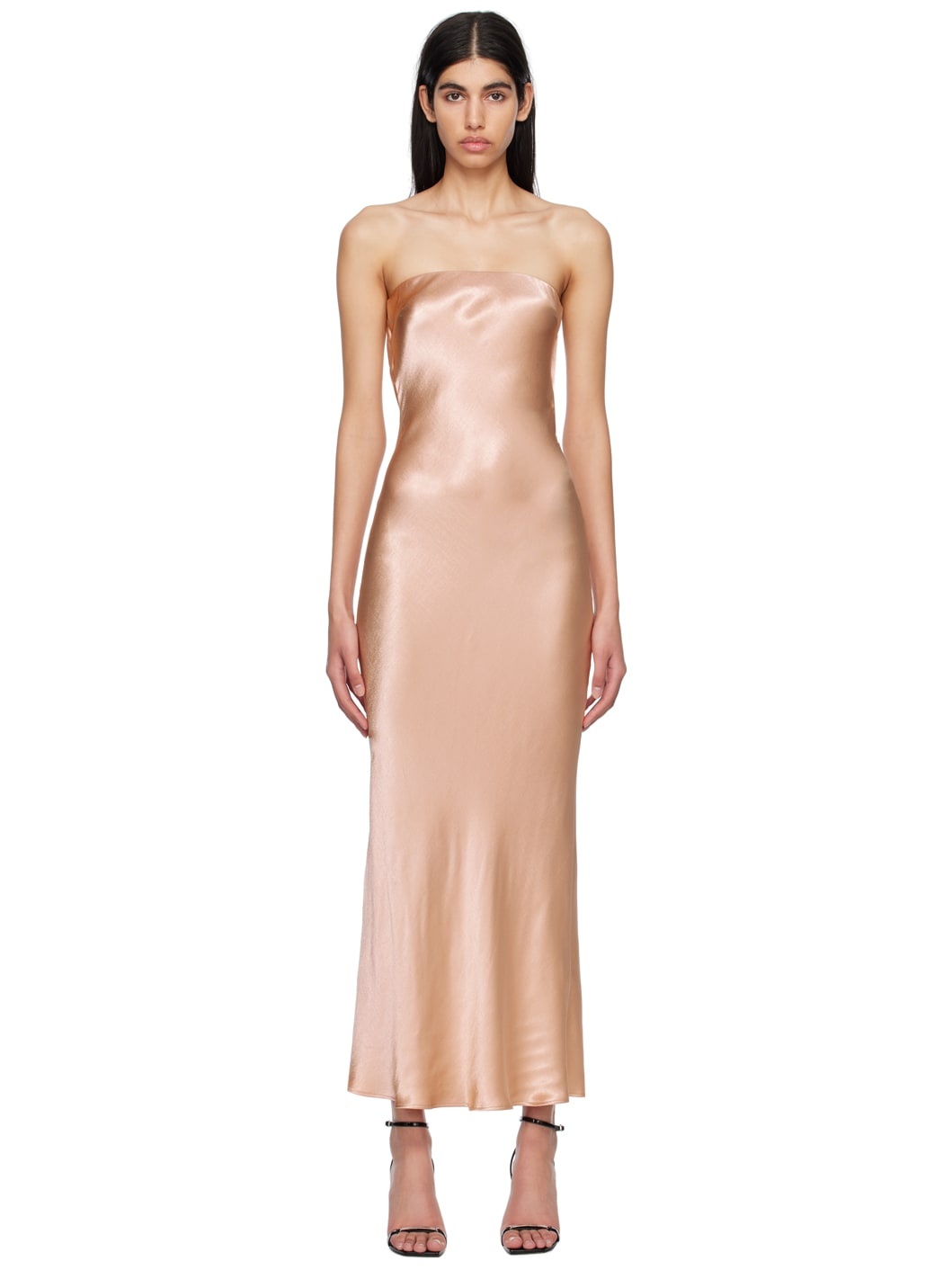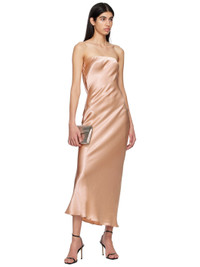 Viscose satin dress. · Elasticized straight neck · Hook-eye closure at back · Draping and cutout at back Supplier color: Rose gold 100% viscose. Made in Australia 231880F054002