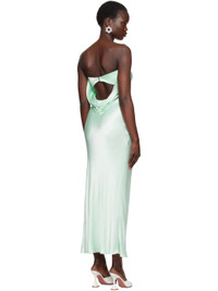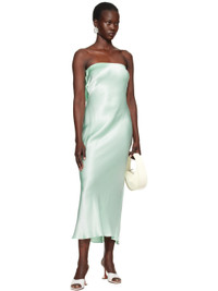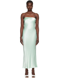 Bias-cut viscose satin maxi dress. · Elasticized straight neck · Darts at chest · Hook-eye fastening at back · Draping at low back · Unlined Supplier color: Mint 100% viscose. Made in Australia 251880F055020