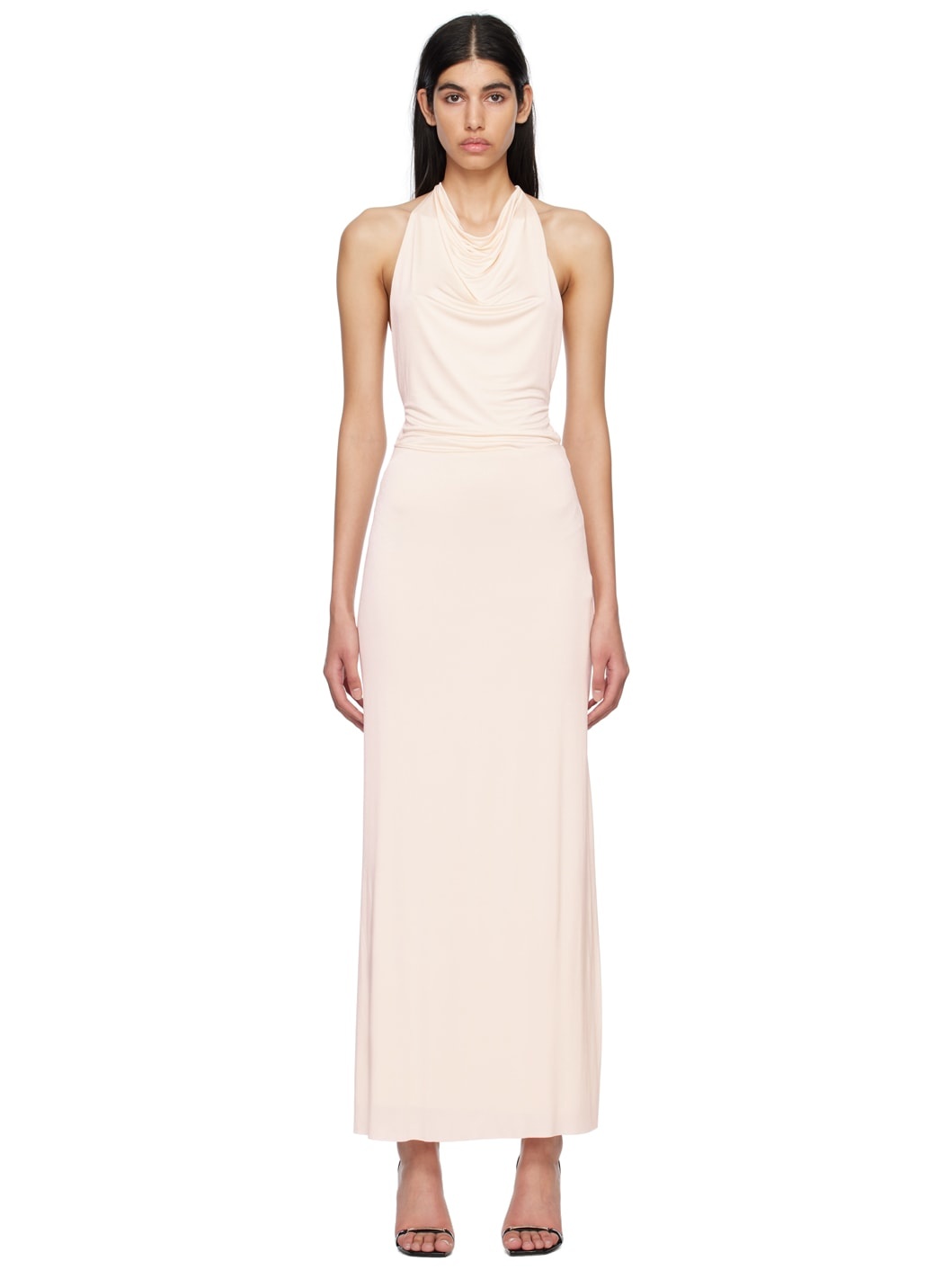 Stretch acetate satin dress. · Cowl neck · Elasticized trim at waist · Self-tie halter strap · Tab-slot fastening at low back · Full satin lining Supplier color: Cream 88% acetate, 12% elastane. Made in Australia 231880F055000