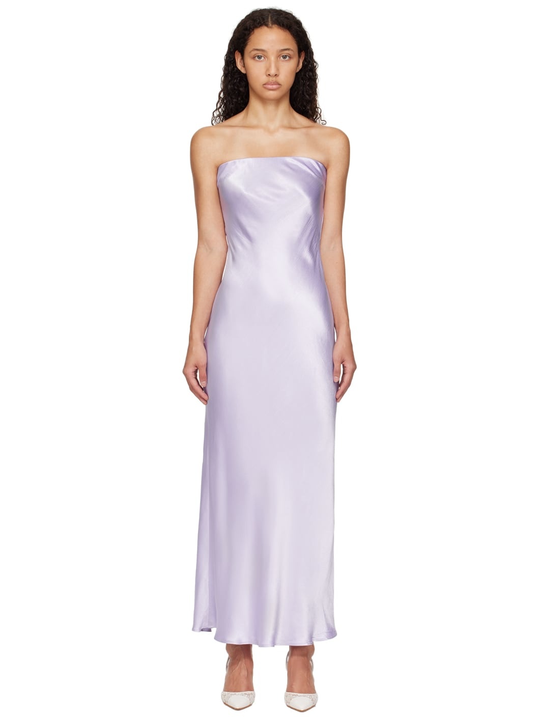 Bias-cut viscose satin maxi dress. · Straight neck · Hook-eye fastening at back · Draping at low back Supplier color: Lilac 100% viscose. Made in Australia 242880F055036