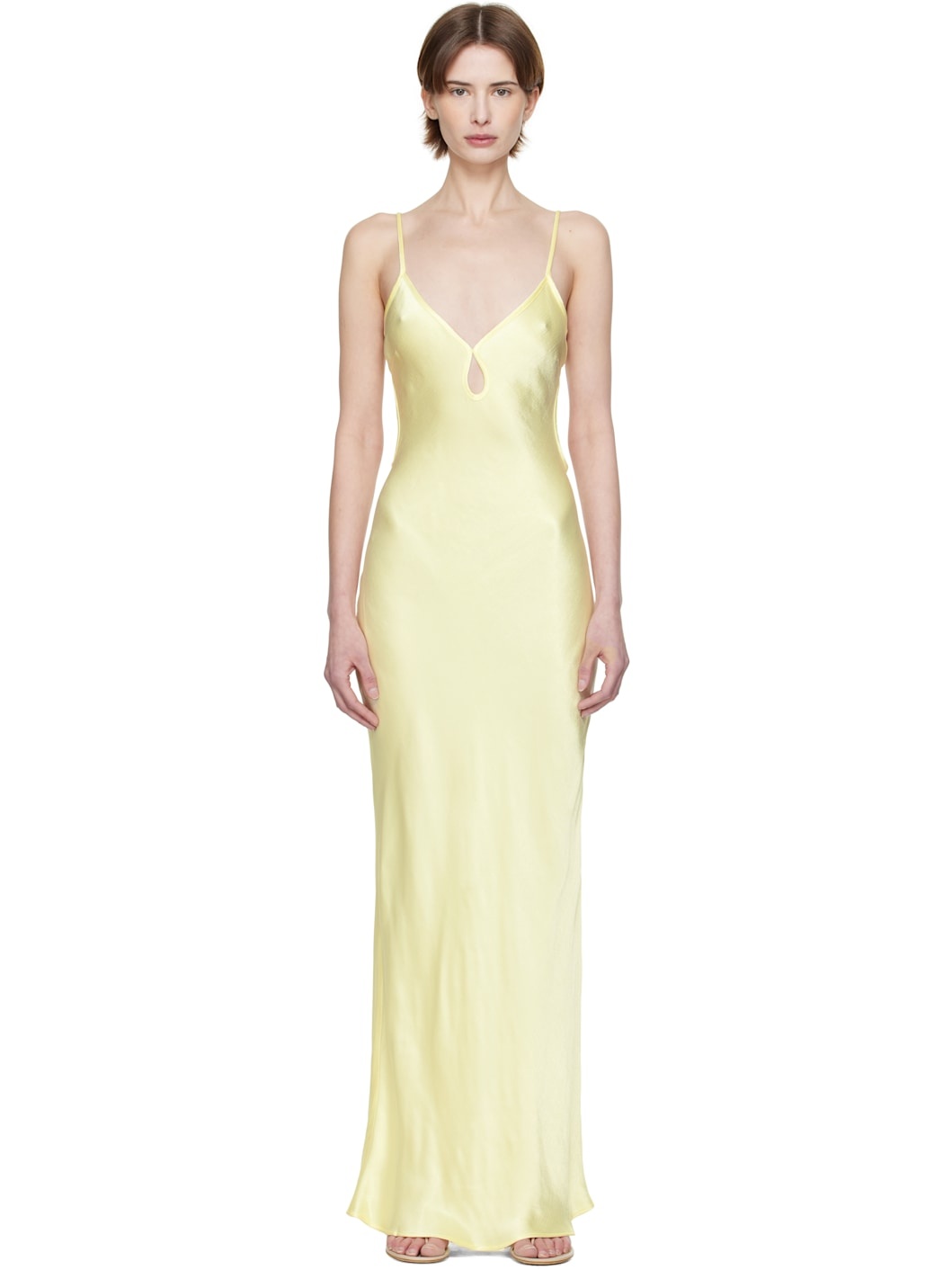 Bias-cut viscose satin maxi dress. · Plunging V-neck · Keyhole at chest · Adjustable self-tie spaghetti straps · Open back · Unlined Supplier color: Ice yellow 100% viscose. Made in Australia 251880F055028