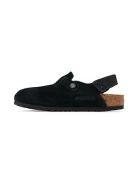 Suede slip-on loafers in black. · Pin-buckle strap at vamp · Pin-buckle slingback strap · Logo embossed at inner side · Logo embossed at molded suede footbed · Cork-latex midsole · Treaded EVA sole · Logo-engraved black hardware Supplier color: Black Upper: leather. Sole: cork, rubber. Made in Germany 242513F121024