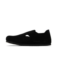 Suede loafers in black. · Adjustable pin-buckle strap at vamp · Logo embossed at inner side · Logo embossed at molded suede footbed · Cork midsole · Treaded EVA rubber sole · Logo-engraved antiqued silver-tone hardware Supplier color: Black suede Upper: leather. Sole: cork, rubber. Made in Portugal 242513M231025