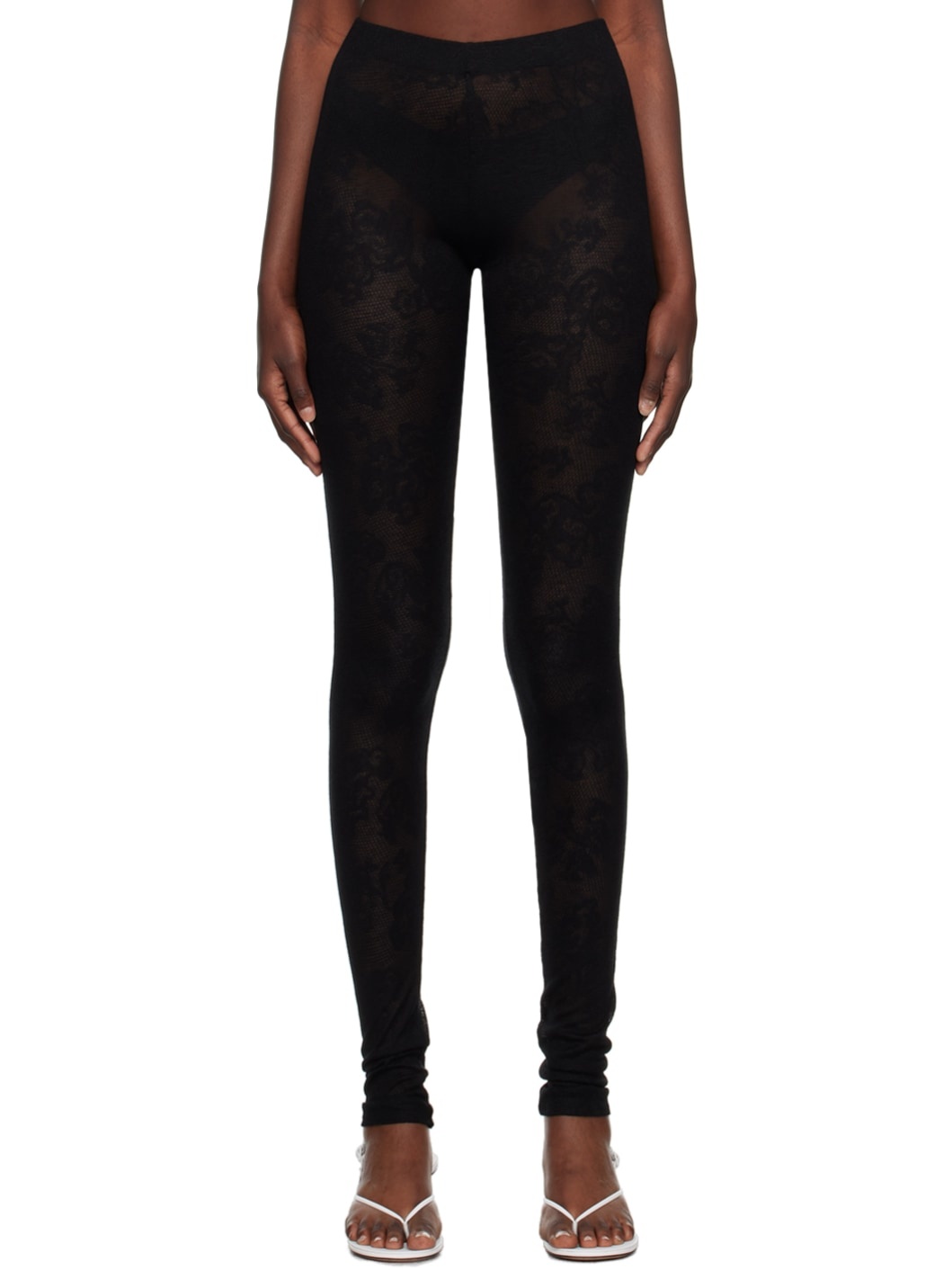 Semi-sheer viscose- and lyocell-blend lace leggings. · Jacquard floral pattern throughout · Elasticized waistband Supplier color: Black 46% viscose, 38% lyocell, 16% wool. Made in Portugal 232734F085000