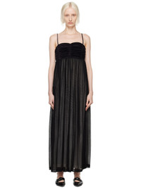 Organic cotton- and recycled polyester-blend velour and muslin dress. · Square neck · Ruching at bodice · Fixed shoulder straps · Zip closure at back · Fully lined Supplier color: Black Body: 88% organic cotton, 12% recycled polyester. Lining: 100% viscose. Made in Portugal 242734F055003