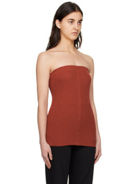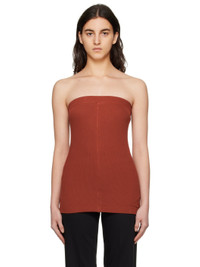 Rib knit stretch viscose tank top. Straight neck. Supplier color: Roasted russet 96% viscose, 4% elastane. Made in Portugal 231734F111014