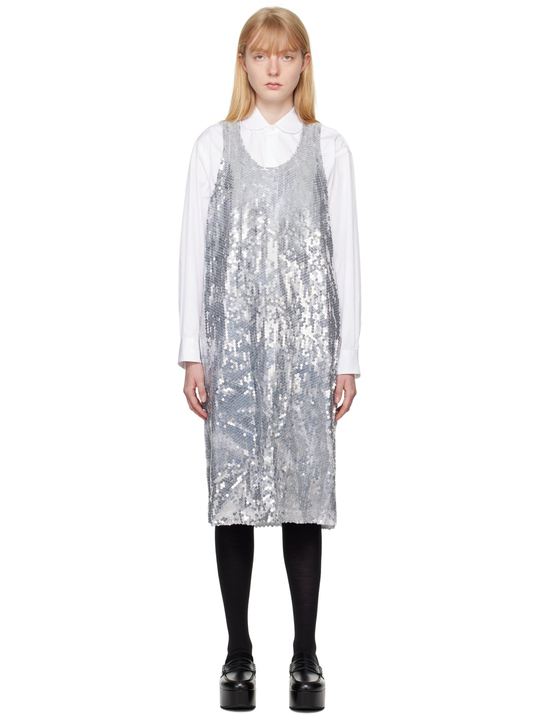 Polyester crepe dress. Sequinned detailing throughout. · Scoop neck · Unlined Supplier color: White/Silver 100% polyester. Made in Japan 241935F054000