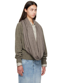 Knit Shetland wool sweater. · Modified plunging cowl neck · Logo stud at front · Rib knit hem and cuffs Supplier color: Brown/Brown 100% shetland wool. Made in Germany 252852F096000