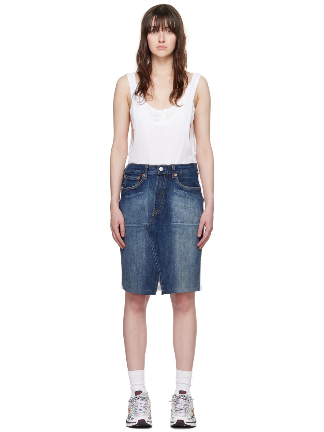 Cotton jersey and non-stretch denim dress. Rib knit trim and whiskering throughout. · Paneled construction · Scoop neck · Belt loops · Self-tie strap · Vented front hem · Contrast stitching in tan Supplier color: Denim blue / White 100% cotton. Made in Germany 241852F054000