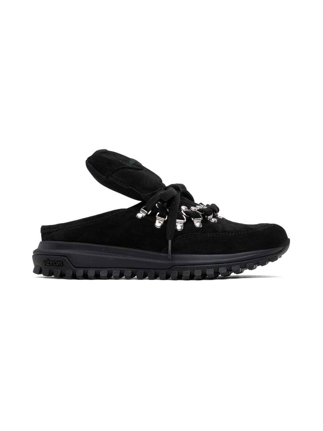 Low-top suede slip-on sneakers in black. · Eyelets at lace-up closure · Detachable padded tongue · Logo embossed at grained leather footbed · Mesh lining · Treaded Vibram® rubber sole Part of the Bluemarble x Diemme collaboration. Supplier color: Black Upper: leather. Sole: rubber. Made in Italy 241950M237001