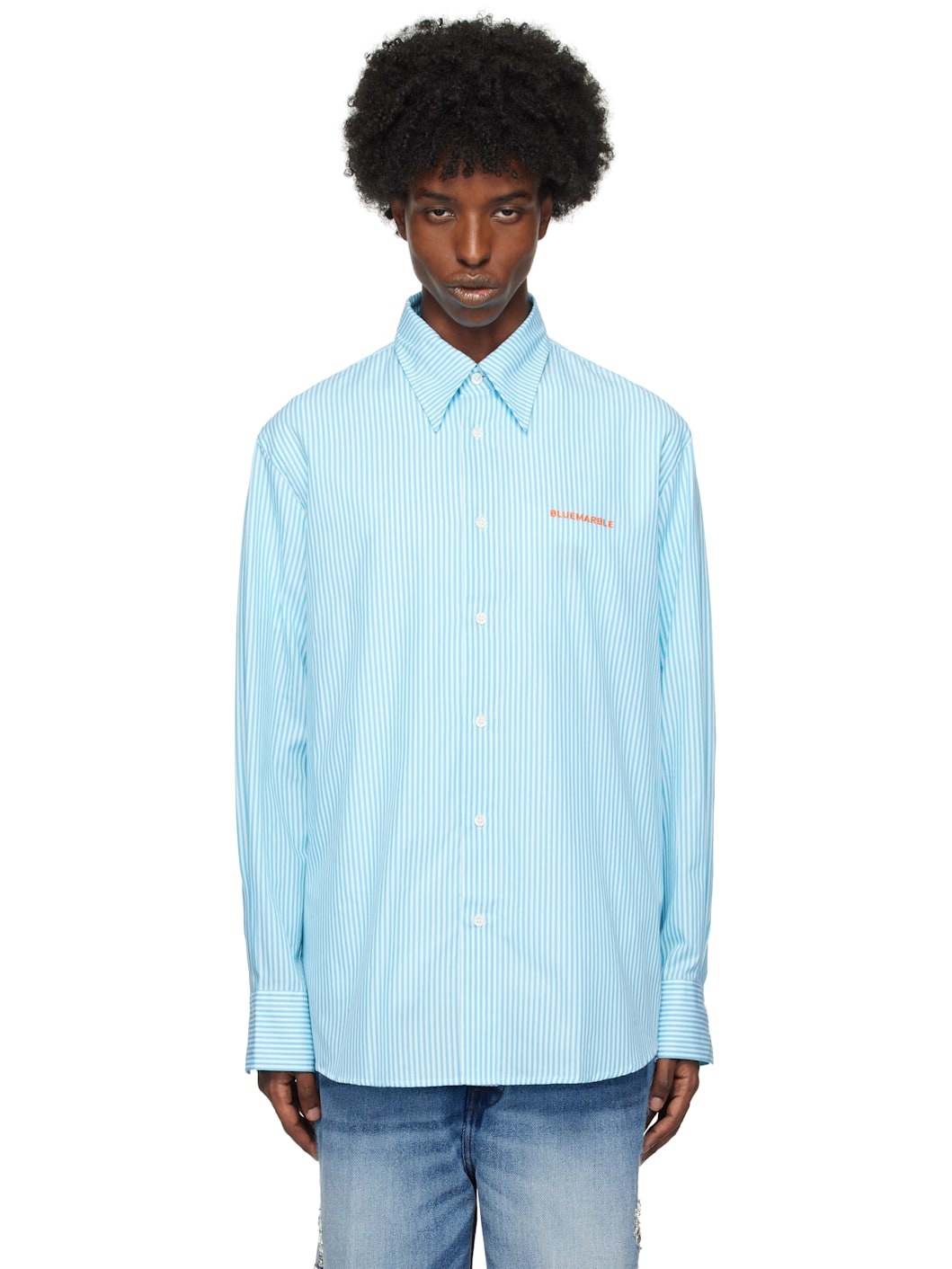 Cotton poplin shirt. Stripes throughout. · Spread collar · Button closure · Logo embroidered at front · Shirttail hem · Pleats at two-button barrel cuffs · Box pleat at back yoke · Mother-of-pearl hardware Supplier color: Light blue stripes 100% cotton. Made in Lithuania 242950M192000