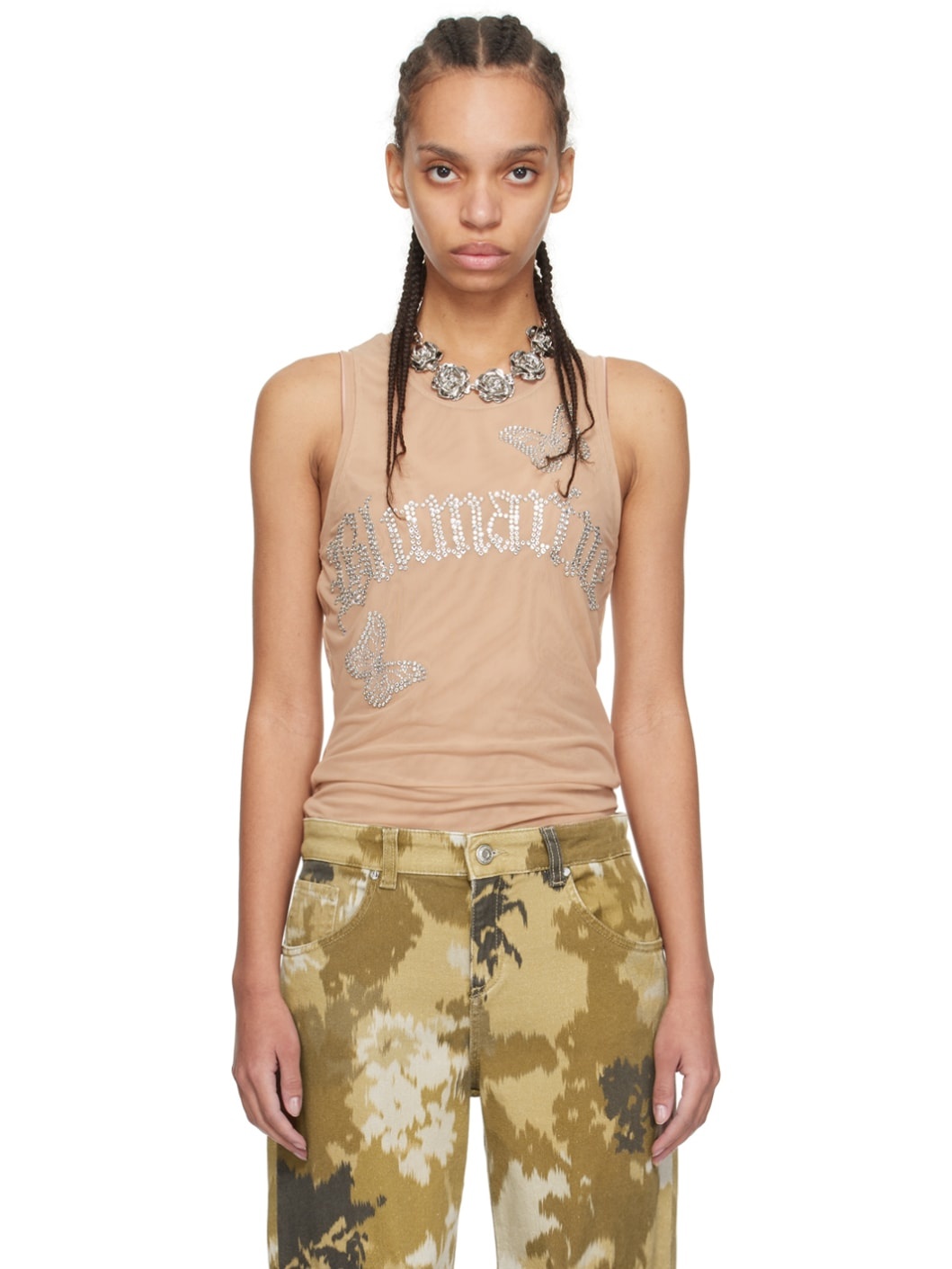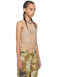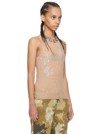Semi-sheer stretch nylon tulle tank top. · Round neck · Crystal-cut graphics at front · Crystal-cut logo at front and back collar · Fully lined Supplier color: Cameo rose