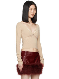 Knit nylon- and acrylic-blend sweater. Lace trim throughout. · V-neck · Pointelle detailing at front · Spaghetti straps · Stretch satin camisole-style underlay Supplier color: Croissant