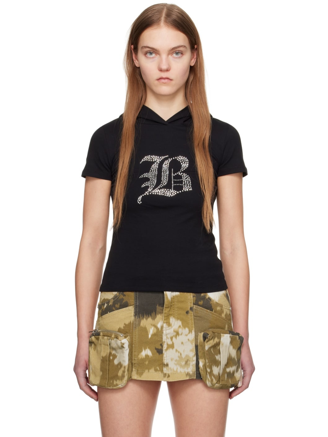 Cotton jersey T-shirt. · Hood at crewneck · Crystal-cut logo at chest Supplier color: Nero 100% cotton. Made in Italy 241901F110010