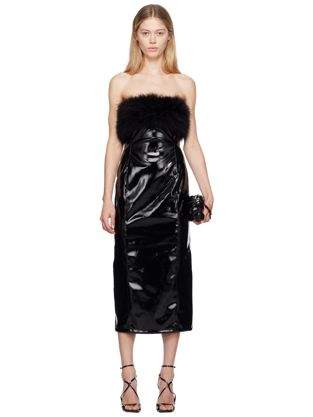 PATENT MIDI DRESS WITH MARABOU FEATHERS