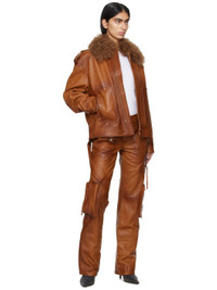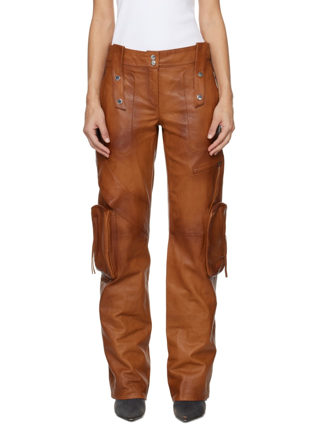Wide-leg vegetable-tanned grained lambskin pants. Fading throughout. · Press-stud belt loops · Four-pocket styling · Zip-fly · Zip pocket and strap at legs · Bellows pocket at outseams · Partial viscose-blend sateen lining Supplier color: Camoscio Body: 100% lambskin. Lining: 57% viscose, 43% polyester. Made in India 241901F084002