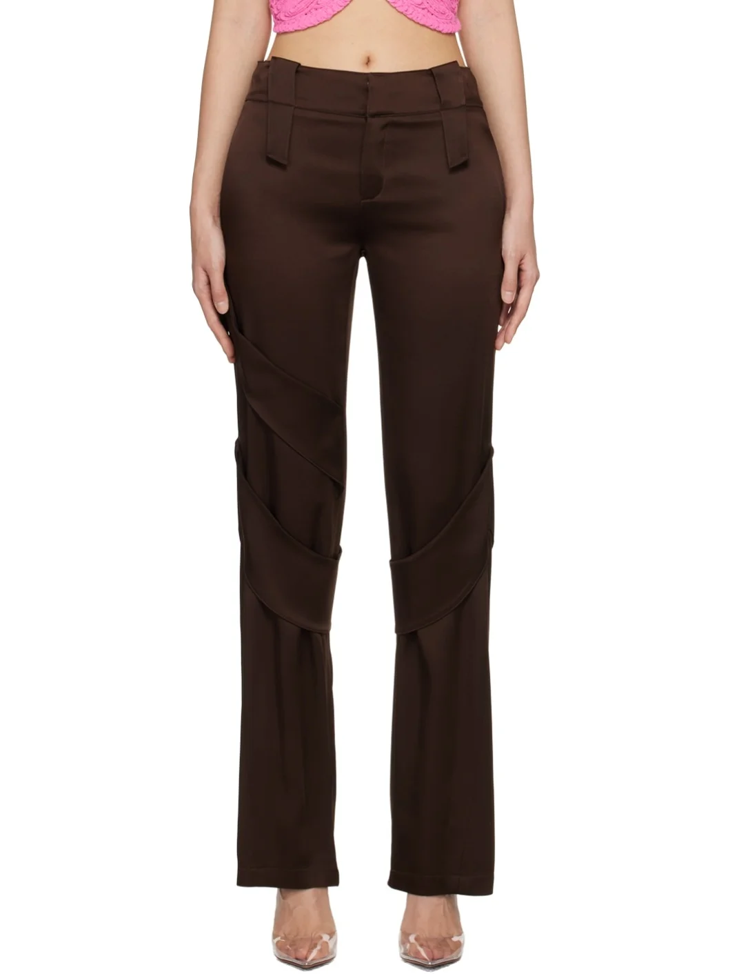 Loose-fit stretch acetate- and viscose-blend sateen trousers. Draping overlays throughout. · Layered construction · Belt loops · Two-pocket styling · Zip-fly · Notch at back waistband · Partial crepe lining Supplier color: Chocolate brown