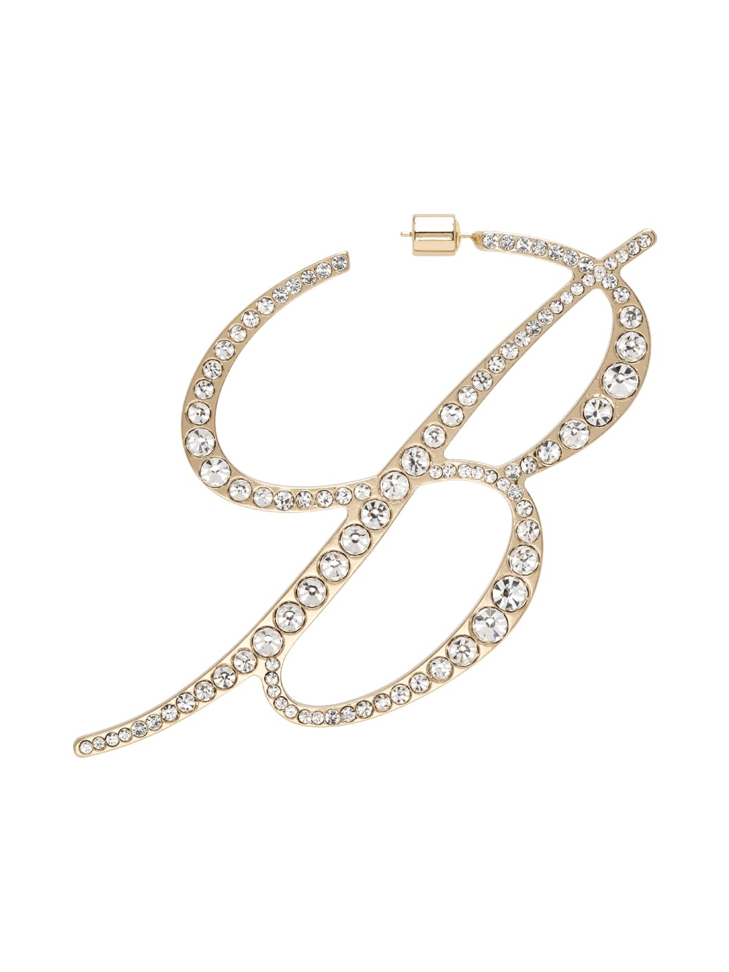 Single drop earring in gold-tone brass. · Logo with bezel-set crystals at drop · Post-stud fastening · H3.5" x W3.5" Supplier color: Gold/Crystal Brass, crystal. Made in Italy 241901F022041