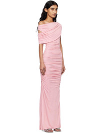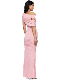 Viscose jersey maxi dress. Draping and ruching throughout. · Single-shoulder construction · Twisted sash-style overlay · Concealed zip closure at side · Low back · Full stretch nylon jersey lining Supplier color: Pink Body: 100% viscose. Lining: 75% polyamide, 25% elastane. Made in Portugal 251901F055005
