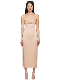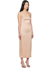 Stretch acetate- and viscose-blend satin midi dress. · Square neck · Gathering at chest · Cup chain shoulder straps with bow accents · Low back · Central vent at back hem · Full crepe lining Supplier color: Eyeshadow pink Body: 71% acetate, 27% viscose, 2% elastane. Lining: 100% polyester. Made in Portugal 251901F054003