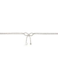 Chain link belt in silver-tone brass. · Crystal-cut accents throughout · Bow hardware with logo charm at face · Logo charm at end · Lobster clasp fastening · W3.25" Supplier color: Silver/Crystal Glass, brass. Made in Italy 251901F001000