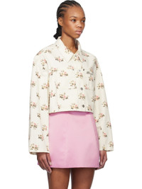 Non-stretch denim jacket. Floral pattern printed throughout. · Spread collar · Button closure · Detachable crystal-cut logo brooch at chest · Patch pockets · Dropped shoulders · Embroidered logo patch at back hem · Logo-engraved silver-tone hardware Supplier color: Butter/Pink 100% cotton. Made in Albania 251901F060000