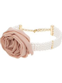 Tiered faux-pearl choker in white. · Detachable georgette floral applique at face · Logo charm at adjustable lobster-clasp fastening · Logo-engraved silver-tone brass hardware · L15.5" Supplier color: Ivory/Cameo rose Plastic, brass, textile. Made in Italy 251901F023006