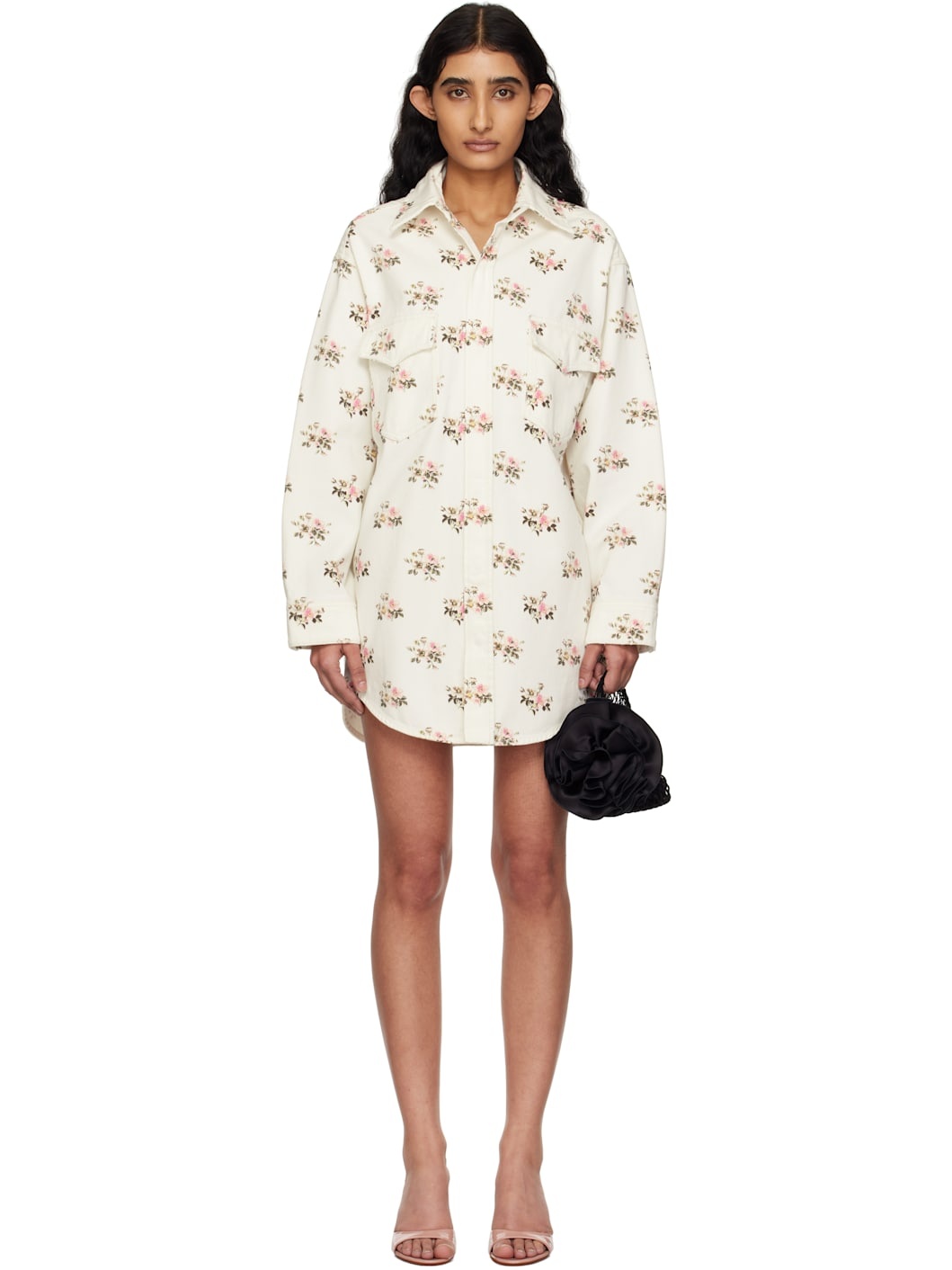 Non-stretch denim overshirt. Floral pattern printed throughout. · Spread collar · Press-stud closure · Flap pockets · Shirttail hem · Pleats at single-button cuffs · Logo embroidered at back collar Supplier color: Butter/Pink Body: 100% cotton. Lining: 65% polyester, 35% cotton. Made in Albania 251901F063002