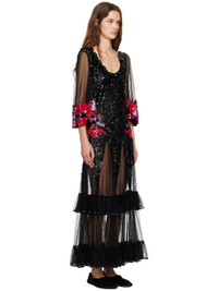 Semi-sheer nylon tulle maxi dress. Hand-applied sequins throughout. · Tired construction · Scoop neck This item is part of a limited run of 11. Supplier color: Black multi Body: 100% nylon. Trim: 100% polyester. Made in India 251169F055000