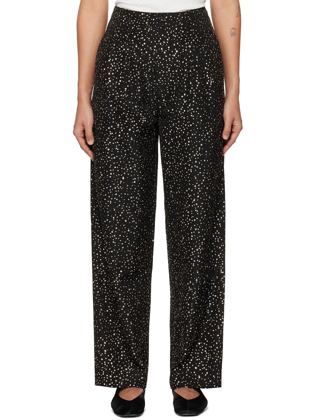 Acetate-blend satin trousers. Glittered pattern throughout. · Belt loops · Four-pocket styling · Zip fly · Pleats at front This item is part of a limited run of 100. Supplier color: Black 63% acetate, 37% polyester. Made in Portugal 251169F087002