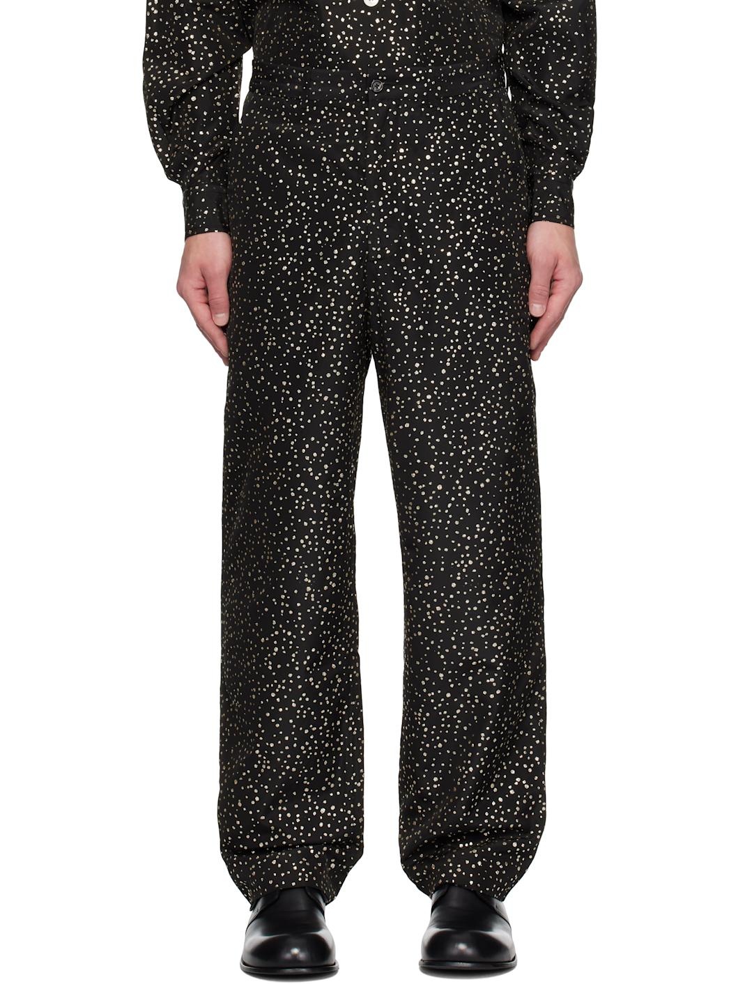Straight-leg acetate-blend satin trousers. Glittered pattern throughout. · High-rise · Belt loops · Three-pocket styling · Zip-fly · Pleats at front · Cinch strap at back waistband This item is part of a limited run of 58. Supplier color: Black 63% acetate, 37% polyester. Made in Portugal 251169M191005
