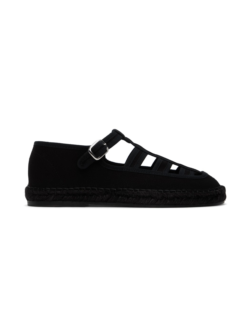 Cotton canvas espadrilles in black. · Cutouts throughout · Pin-buckle strap at vamp · Partial buffed leather lining · Blanket stitching at welt · Hand-sewn braided jute midsole · Leather sole Supplier color: Black 100% cotton. Made in Portugal 242169M229001