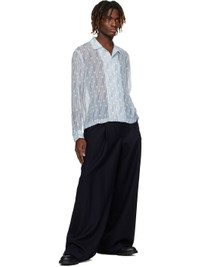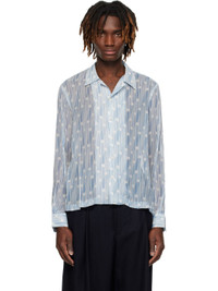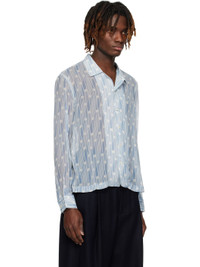 Sheer silk gauze shirt. Stripes and polka-dot pattern printed throughout. · Open spread collar · Button closure · Buttoned barrel cuffs · Pleats at back yoke This item is part of a limited run of 65. Supplier color: Blue 100% silk. Made in India 251169M192018
