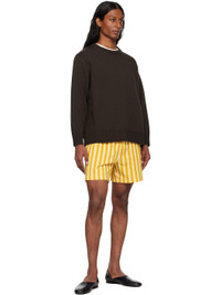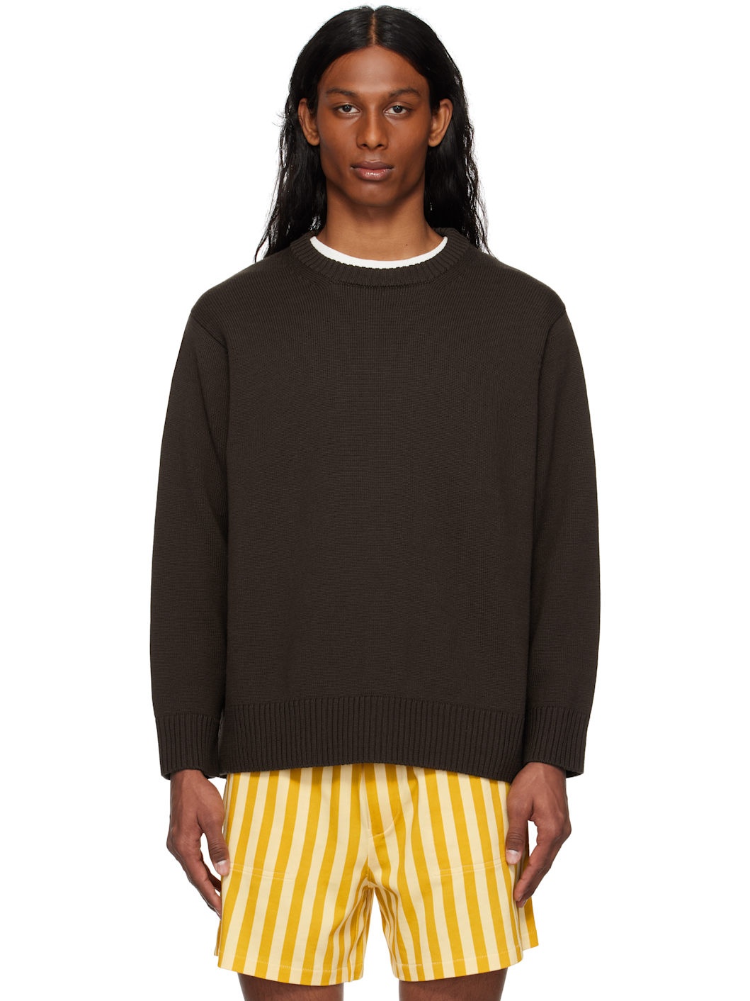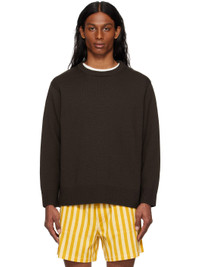 Knit extra-fine merino wool sweater. Rib-knit crewneck, hem, and cuffs. This item is part of a limited run of 123. Supplier color: Brown/Black 100% merino wool. Made in Romania 251169M201006