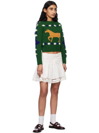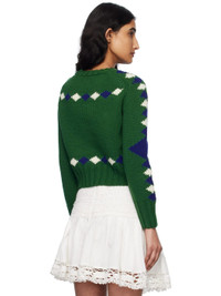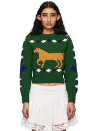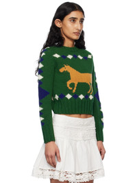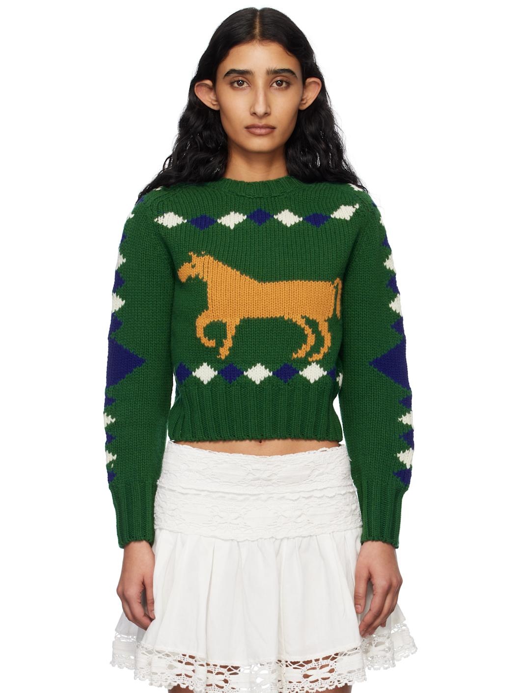 Knit merino wool sweater. Jacquard graphic pattern throughout. · Rib-knit crewneck, hem, and cuffs · Intarsia graphic at front · Saddle shoulders This item is part of a limited run of 90. Supplier color: Green 100% merino wool. Made in Romania 251169F096004