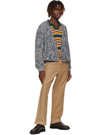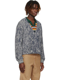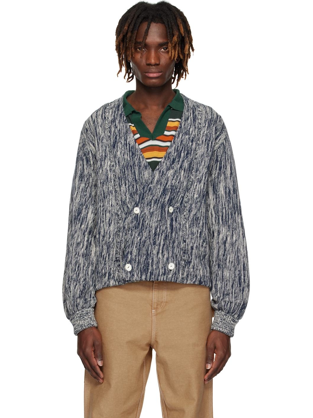 Knit cotton cardigan. · Y-neck · Double-breasted button closure · Partially rib-knit hem · Button vent at side seams · Rib-knit cuffs · Hand-embroidered logo at back This item is part of a limited run of 121. Supplier color: Marled blue 100% cotton. Made in Peru 251169M200007
