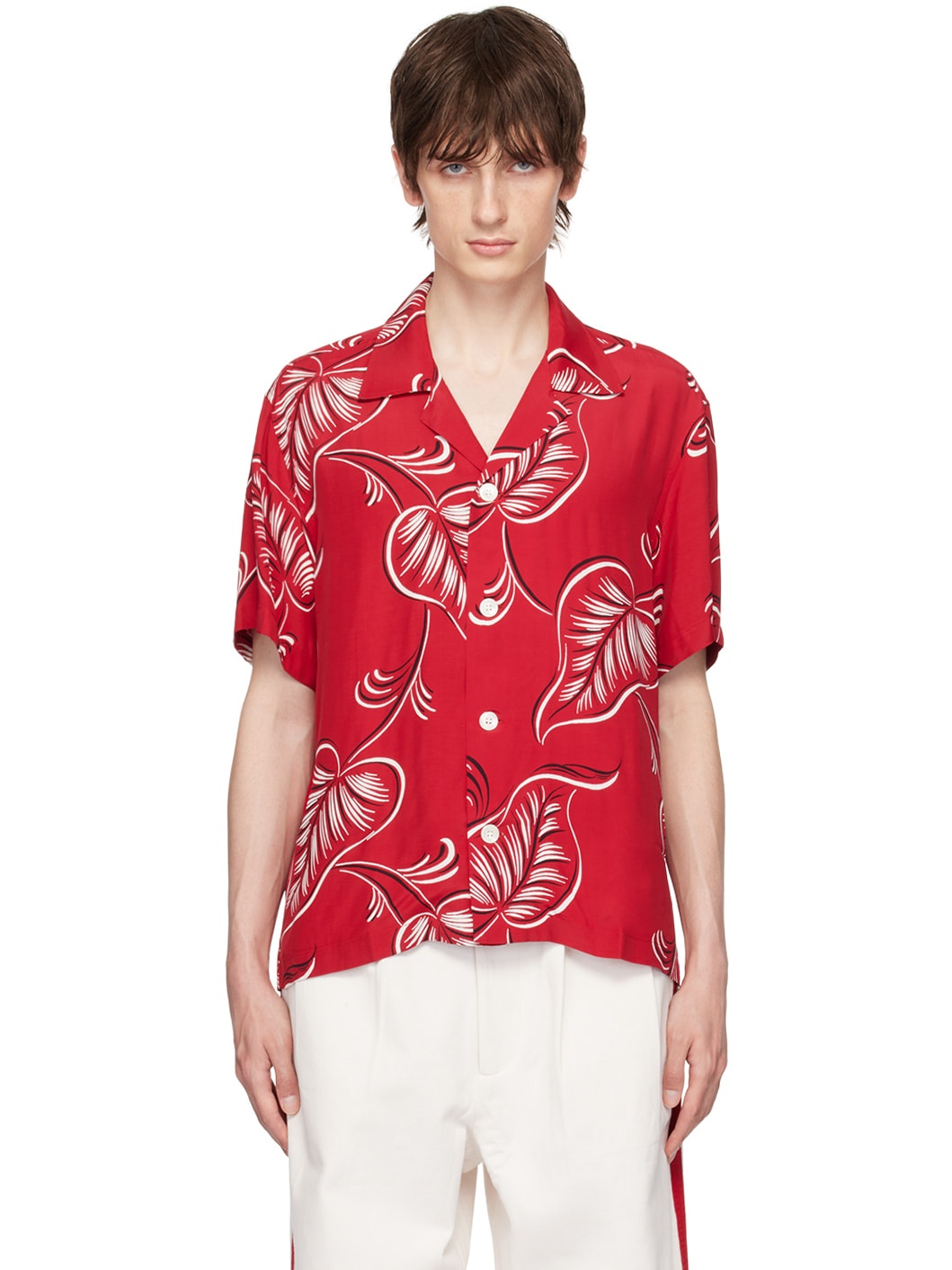 Viscose canvas shirt. Graphic pattern printed throughout. · Open spread collar · Button closure · Logo embroidered at back This item is part of a limited run of 95. Supplier color: Red/White 100% viscose. Made in Portugal 242169M192021