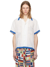 Plain-woven linen shirt. Picot detailing and graphic embroidered throughout. · Open spread collar · Button closure This item is part of a limited run of 228. Supplier color: White/Blue 100% linen. Made in India 251169M192021