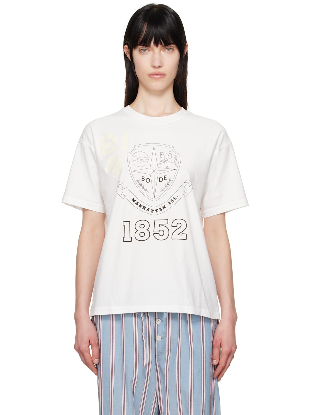 Reversible cotton jersey T-shirt. Reverse in white cotton jersey. · Lightweight and semi-sheer · Rib-knit crewneck · Text and logo graphic printed at chest · Text and graphic printed at interior This item is part of a limited run of 203. Supplier color: Cream 100% cotton. Made in Portugal 251169F110007